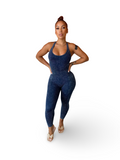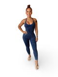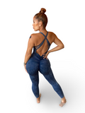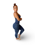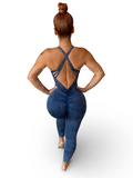 Super stretchy denim vintage wash one piece with open V back! Very sexy very comfy can wear to gym, with sandals, travel or going out! Dress it up how you want! High quality, non see through. GET BODIED